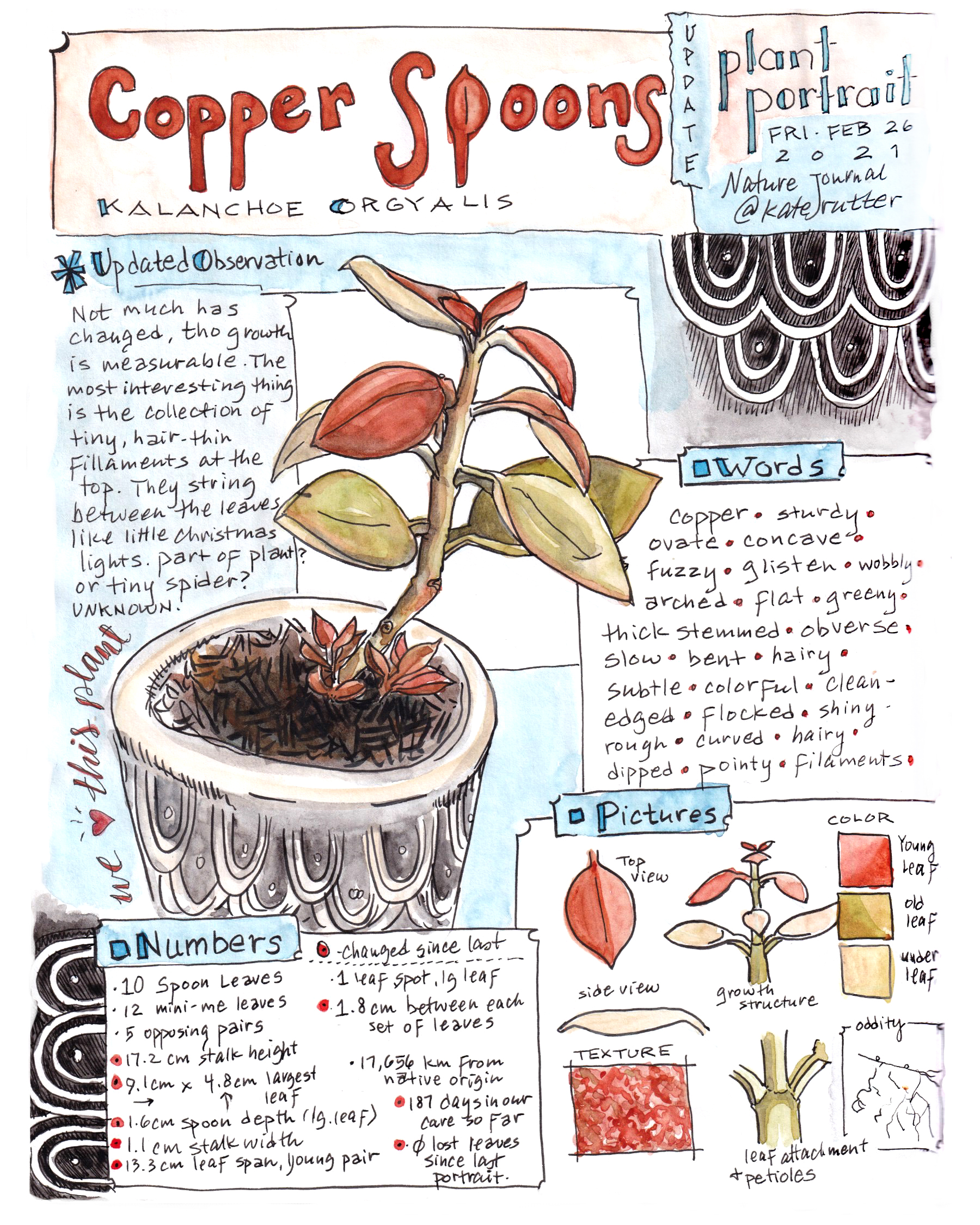 Using the initial plant portrait as a model, I updated the information in a new portrait. Discovering the small changes made me appreciate this magical plant even more.