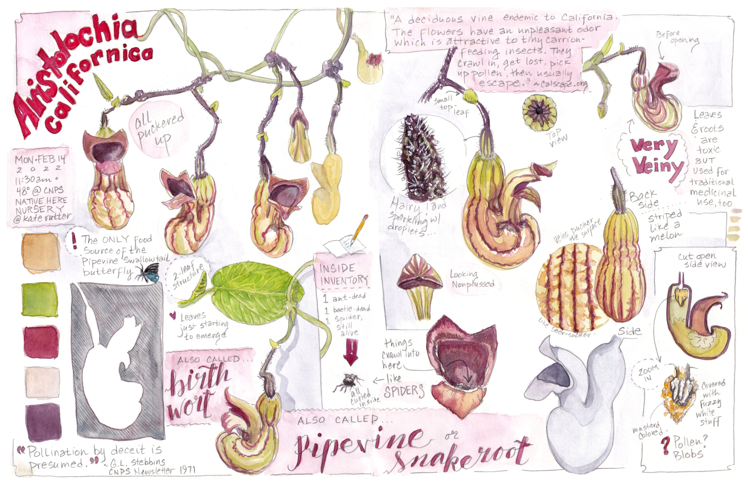 To learn more about this fascinating plant, I grabbed my nature journal and started exploring. Now I’m an official member of the Aristolochia Fan Club!